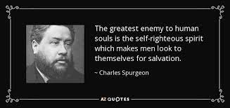 Leon F Seltzer, PHD, defines self-righteousness in ‘Psychology Today’as, “Jesus was 100% righteous and, too, 100% right. And since we’re all sinners, when we deign to see ourselves as righteous, we’re actually being self-righteous. The irony of self-righteousness is that it trust[s] in itself, its feelings, its emotions, its desires, its logic, and its understanding. So it never sees the error in its own ways. People labeled as self-righteous are negatively identified as characteristically vainglorious and self-deceiving; gratuitously feeling superior; and being arrogant, elitist, and self-aggrandizing (sometimes falling headlong into the pitiable pit of narcissism).