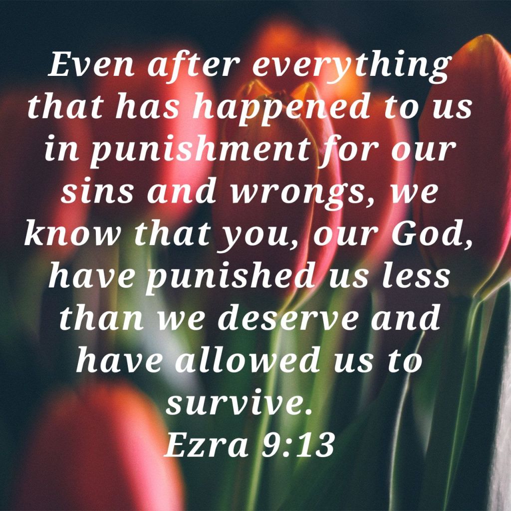 One such corner is found in Ezra 9. The people broke God’s Laws, worshipped idols, had sex with evil people, and turned from God, which caused them to become slaves in Persia. Yet, after all the rejection, God still gives the Israelites favour through their captives- the kings of Persia, and sets a plan in motion to help His disobedient children. Again.