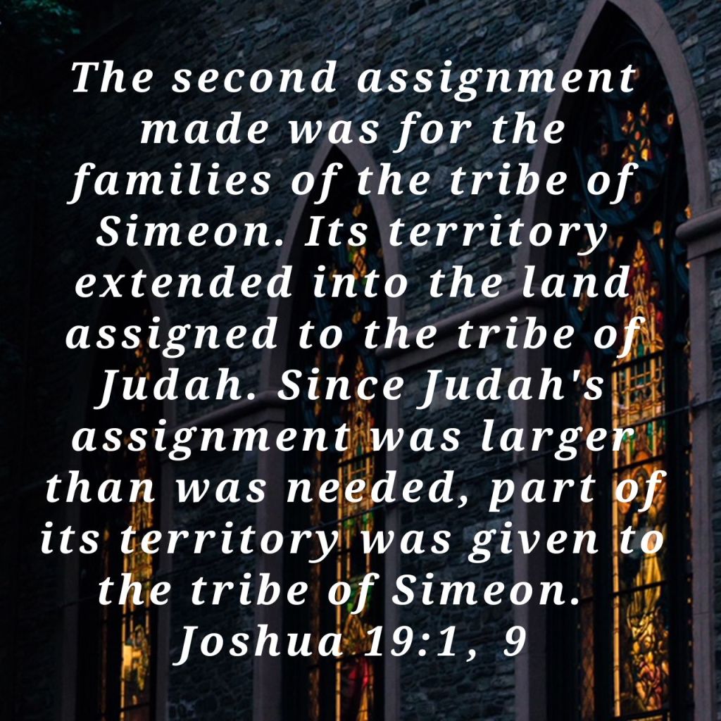 Don’t you find the wording intriguing, considering that the concept is repeated twice in this paragraph- territory within the territory? Reading Joshua 19 vs 1 & 9 in context, we discover that this allotment of Simeon’s territory within Judah’s territory is an act of correction and Mercy.