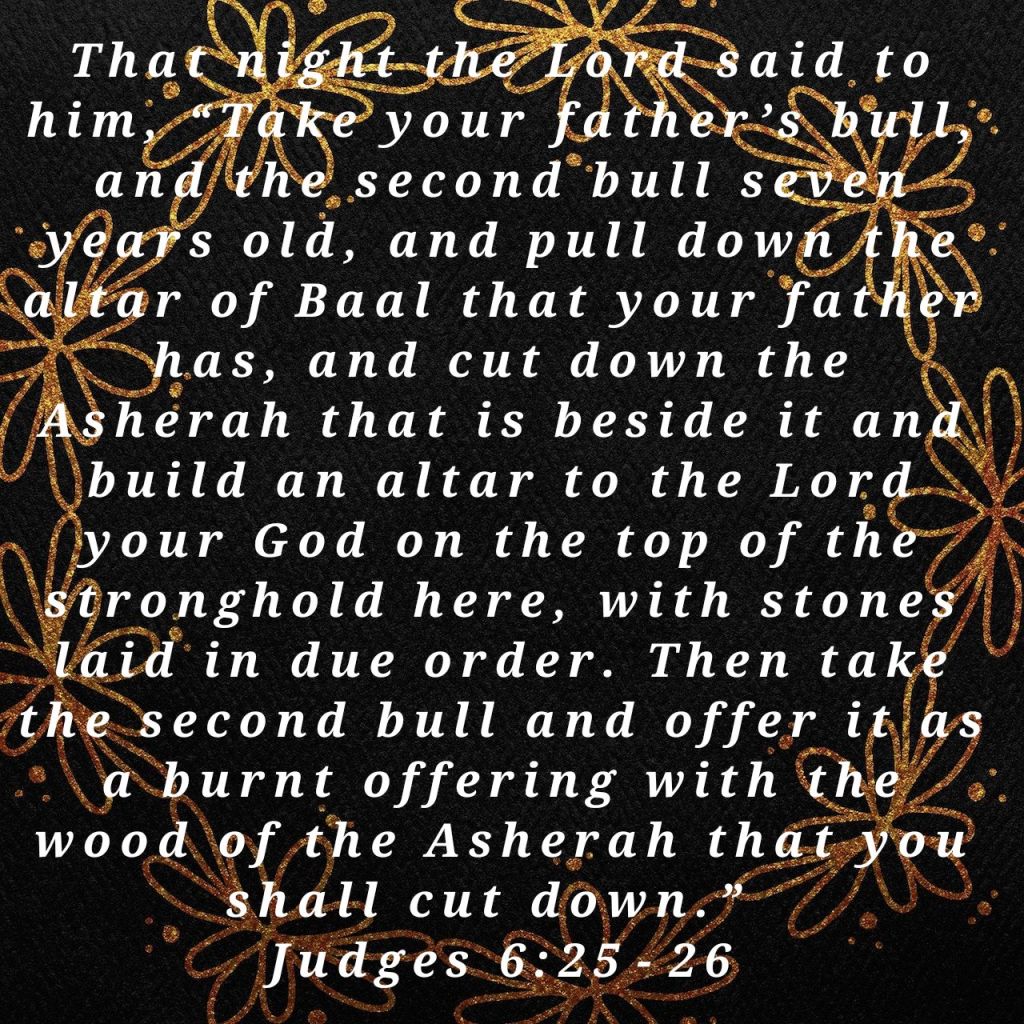 It’s fascinating how Jesus instructed Gideon to construct an altar on the smashed pagan one and utilize the asherah wood to present a sacrifice to God. This emphasizes the significance of prioritizing Jesus above any other “god” in our lives. GOD MUST BE ON TOP.