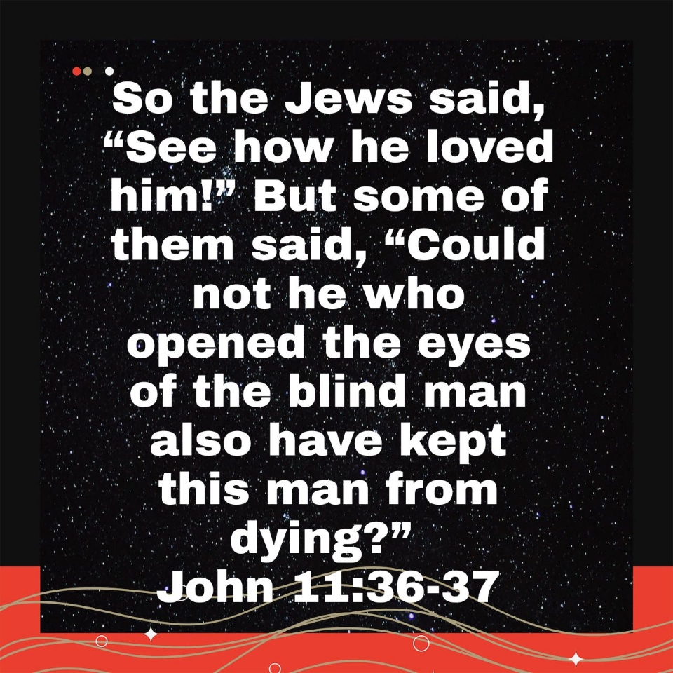 Messiah King Jesus runs into some unreasonable people, as we see in John 11 vs 36-37.