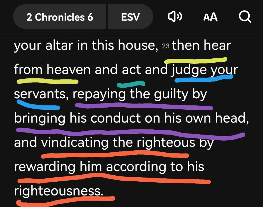 Bear in mind that Solomon never knew Jesus, and died hundreds of years before Jesus was born, so speaking in 2 Chronicles 6 vs 23, unbeknownst to Solomon he was prophesying exactly what Jesus is here to do.