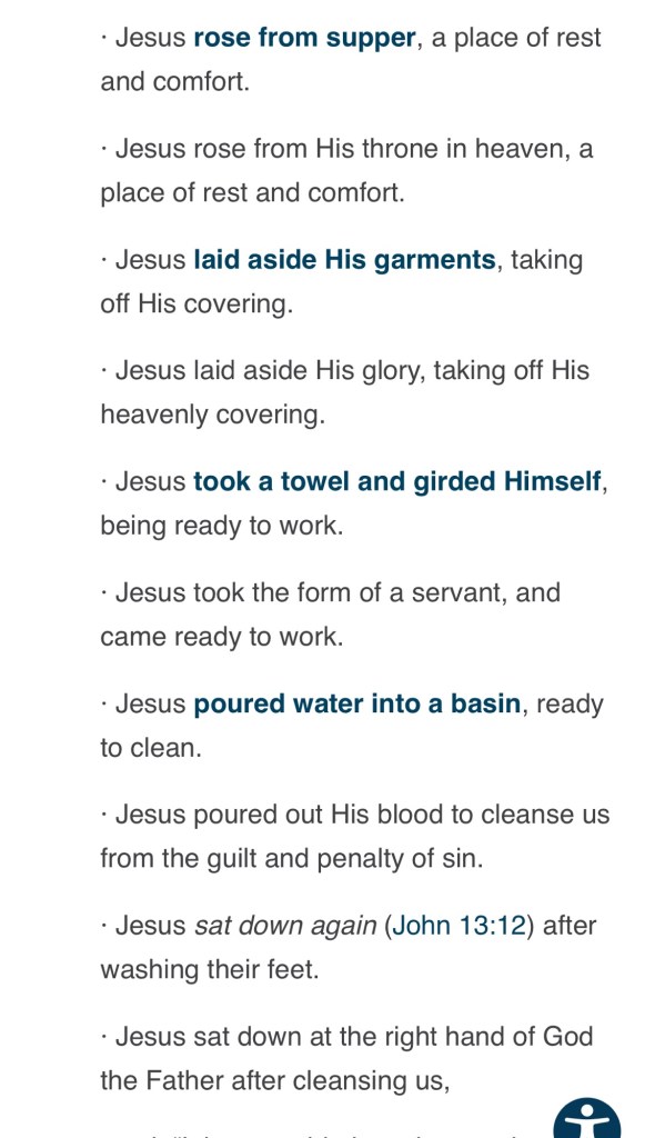 Jesus “rose from supper” as He rose from heaven; “laid aside His garments” as He laid aside His glory; “took a towel” as He took the form of a servant; “poured water” as He poured out His blood.