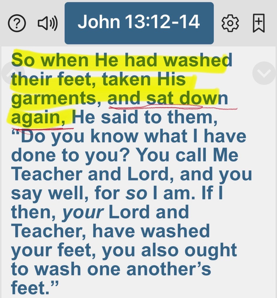 John 13 records that after washing their feet, Jesus “took His garments, and sat down again.” The detail is not incidental. It marks a divine rhythm, a time to kneel, a time to cleanse, a time to rise, and a time to commune.