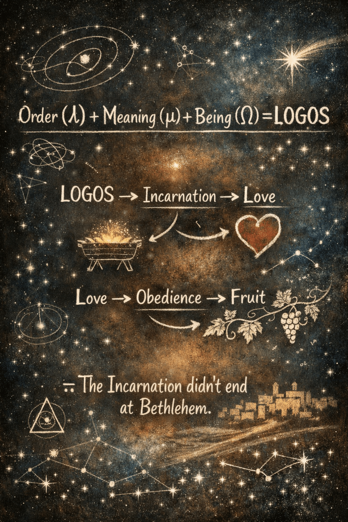 Fruit that remains is not achievement; it is alignment. It is the life of the Vine reproducing itself through the branches. Where the mathematical Logos revealed God’s intellect, and the biological Logos revealed His imprint, the theological Logos now reveals His intimacy. And intimacy bears fruit; love that does not decay, truth that does not fracture, obedience that does not waver.