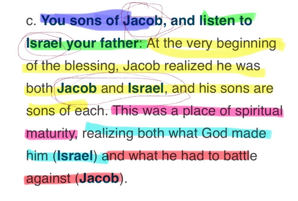 But, as Guzik, D, ‘Enduring Word‘ shows us, Jacob had grown into the awareness of what God intended for him, yet still was honest about his humanness- “You sons of Jacob, listen to Israel your father.”