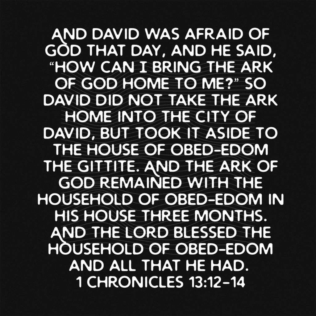 1 Chronicles 13 vs 12-14, ends with God’s Character beautifully displayed. God wants to bless us, but that blessing comes with a clause- we must obey Him.