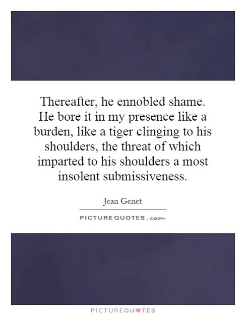 Jean Genet describes shame so beautifully, yet exactly. When I started Hairdressing, age 19, I was fortunate to have the Qualified Stylist I did. He was a strong, masculine, heterosexual man who pushed me hard. Oneday, shoulders slumped over, shame all over me, like a tiger, he slapped my back saying, “Lift your head up. Be proud of yourself.”