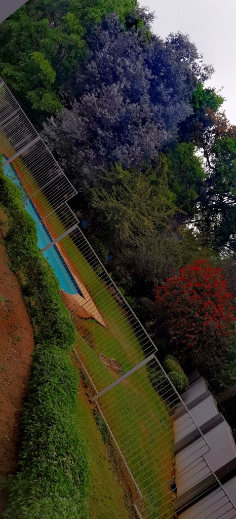 Sitting outside of my apartment readying to write this blog I am aware of God’s Presence. The rat-race traffic buzzes passed just beyond the grey security wall. A soft misty drizzle teases.